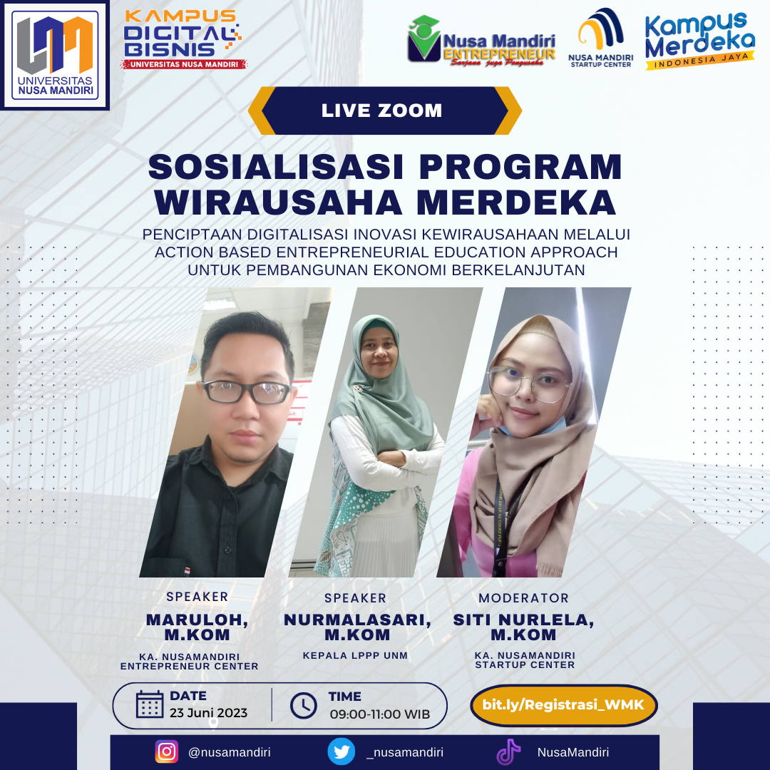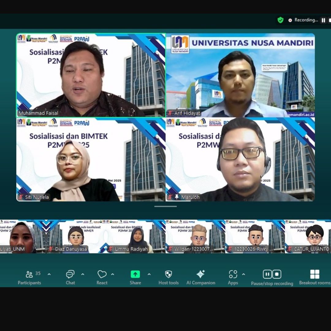 Universitas Nusa Mandiri (UNM) melalui Nusa Mandiri Entrepreneur Center (NEC) sukses menyelenggarakan kegiatan Sosialisasi Kompetisi Mahasiswa Bidang Bisnis, Manajemen, dan Keuangan (KBMK) 2025 pada Jumat, 4 Juli 2025. Kegiatan ini digelar secara daring melalui Zoom M...