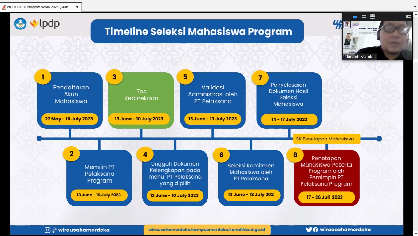 Dalam rangka mendorong dan mencetak mahasiswa untuk menjalankan dan mengembangkan wirausaha serta meningkatkan program kewirausahaan di perguruan tinggi, Direktorat Pembelajaran dan Kemahasiswaan, Ditjen Diktiristek pada tahun 2022 membuka Program Pembinaan Mahasiswa ...