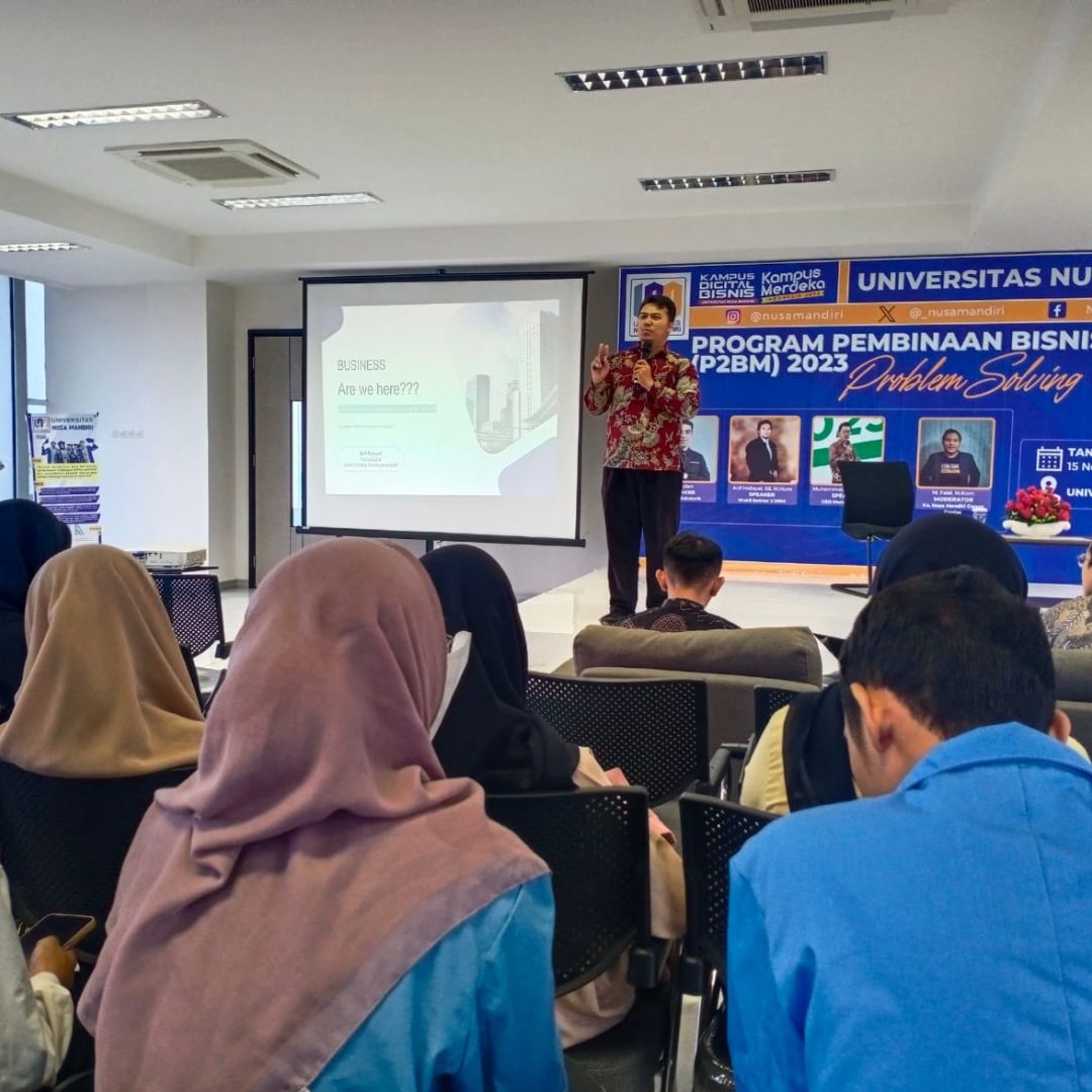 Dalam rangka pembinaan bisnis kepada mahasiswa, Universitas Nusa Mandiri bekerja sama dengan Nusa Mandiri Center kembali menyelenggarakan Seminar Program Pembinaan Bisnis Mahasiswa (P2BM) 2023 dengan tema Problem Solving. Kegiatan yang dilaksanakan pada tanggal 15 Nov...