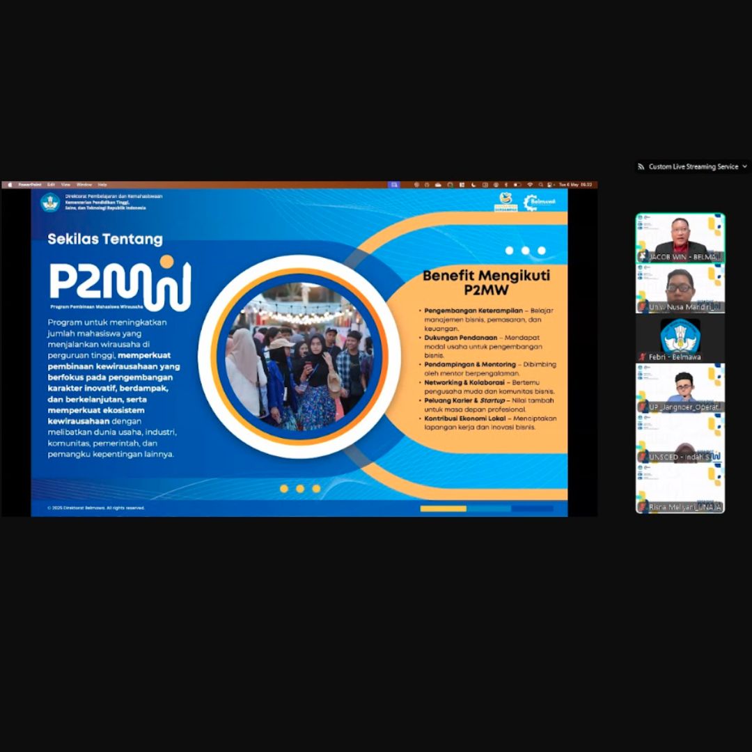 Dalam rangka mendorong dan mencetak mahasiswa yang mampu menjalankan serta mengembangkan kegiatan wirausaha secara berkelanjutan, Direktorat Pembelajaran dan Kemahasiswaan kembali membuka Program Pembinaan Mahasiswa Wirausaha (P2MW) 2025 bagi mahasiswa dan perguruan t...